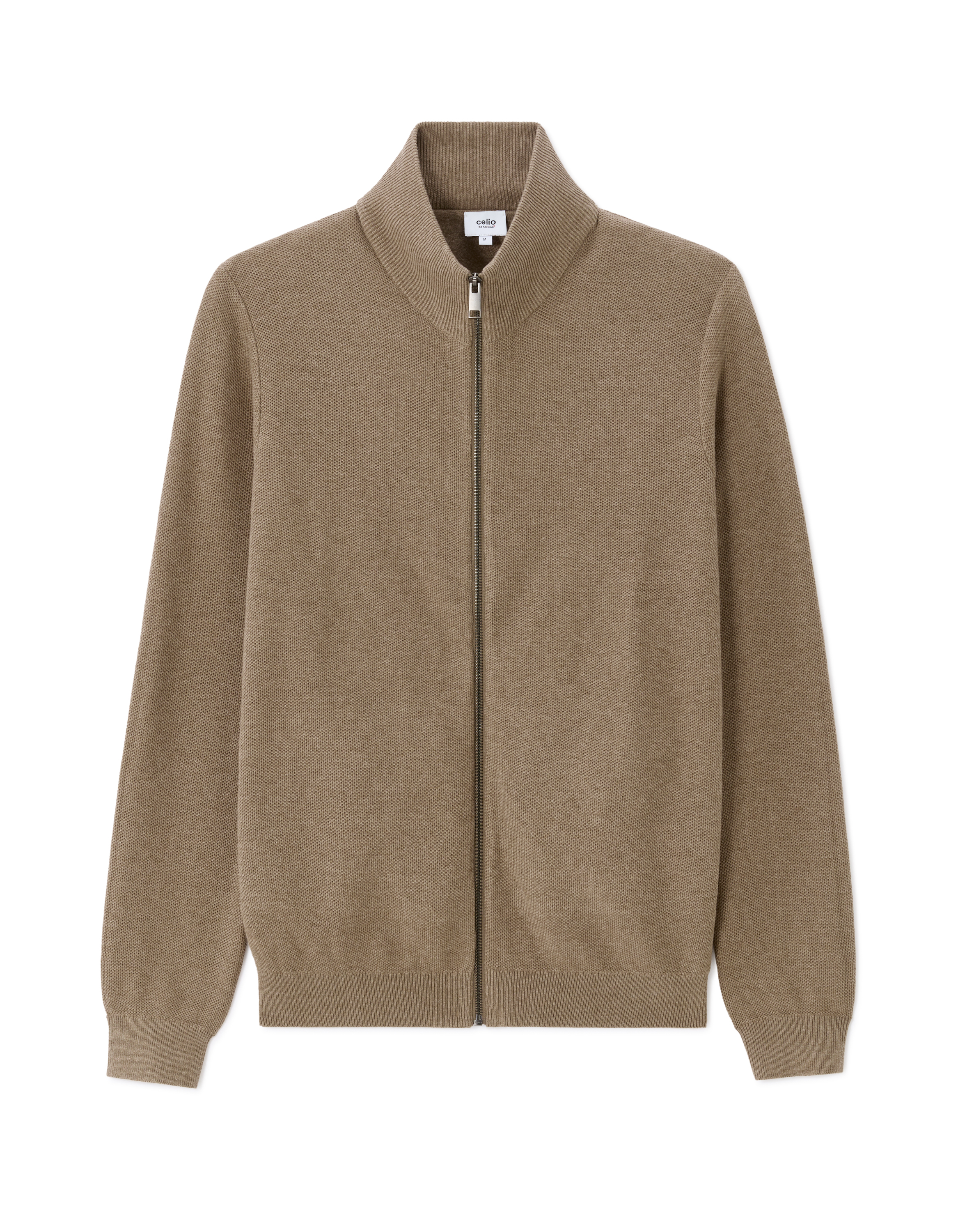 Cardigan zippé col camioneur 100% coton - beige