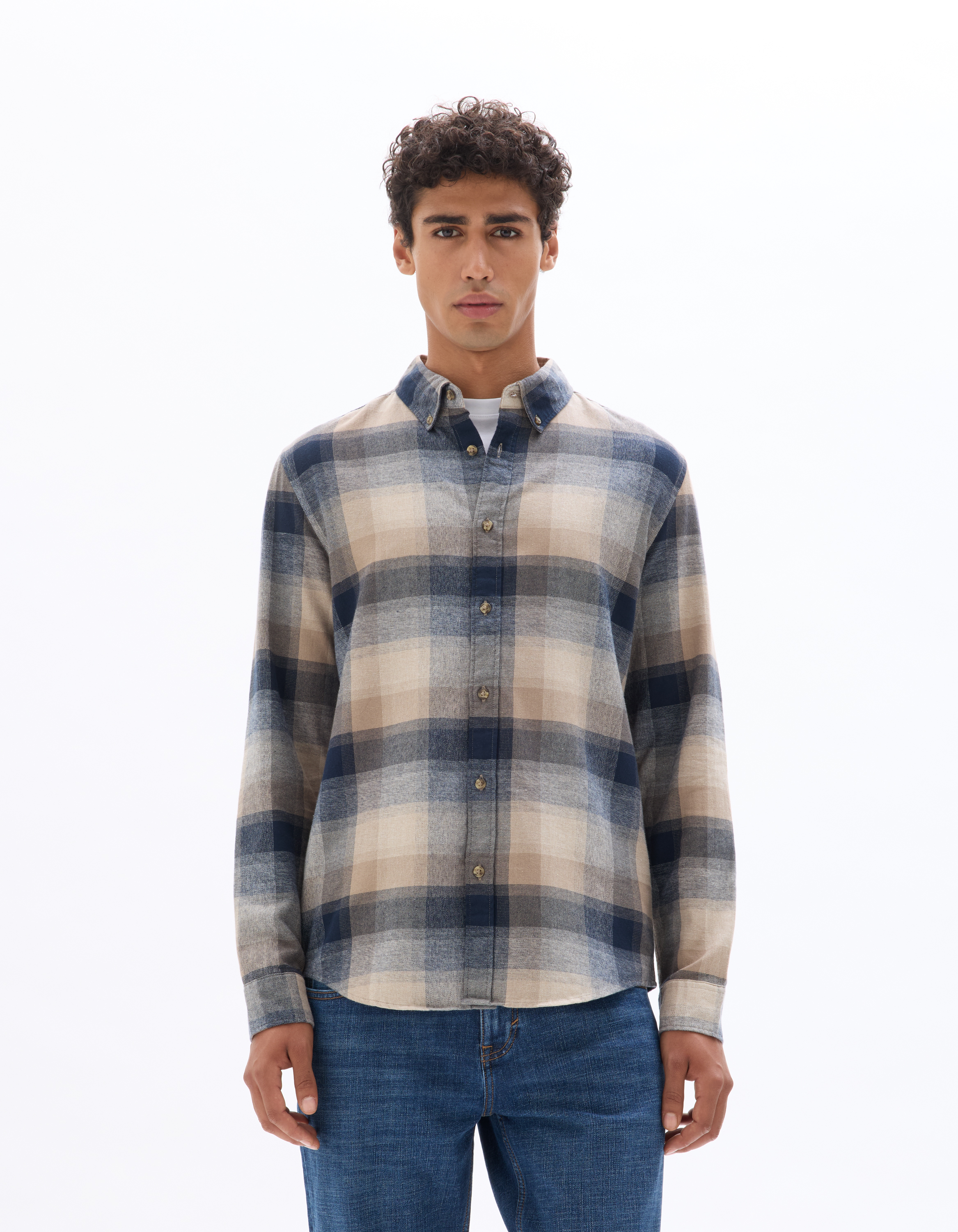 Chemise regular à carreaux en flanelle 100% coton - beige