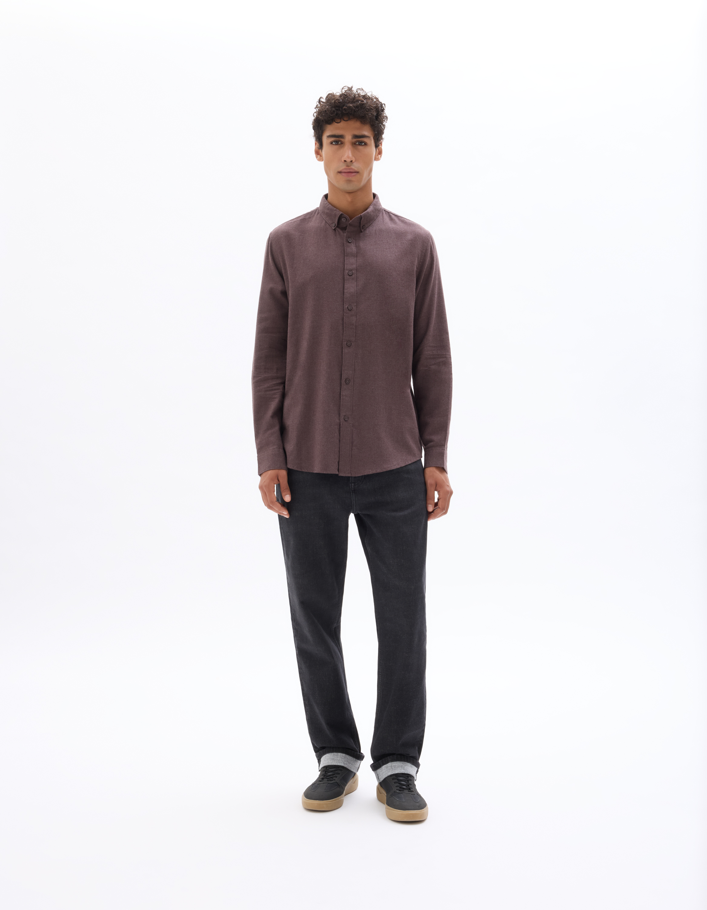 Chemise regular unie en flanelle - beige