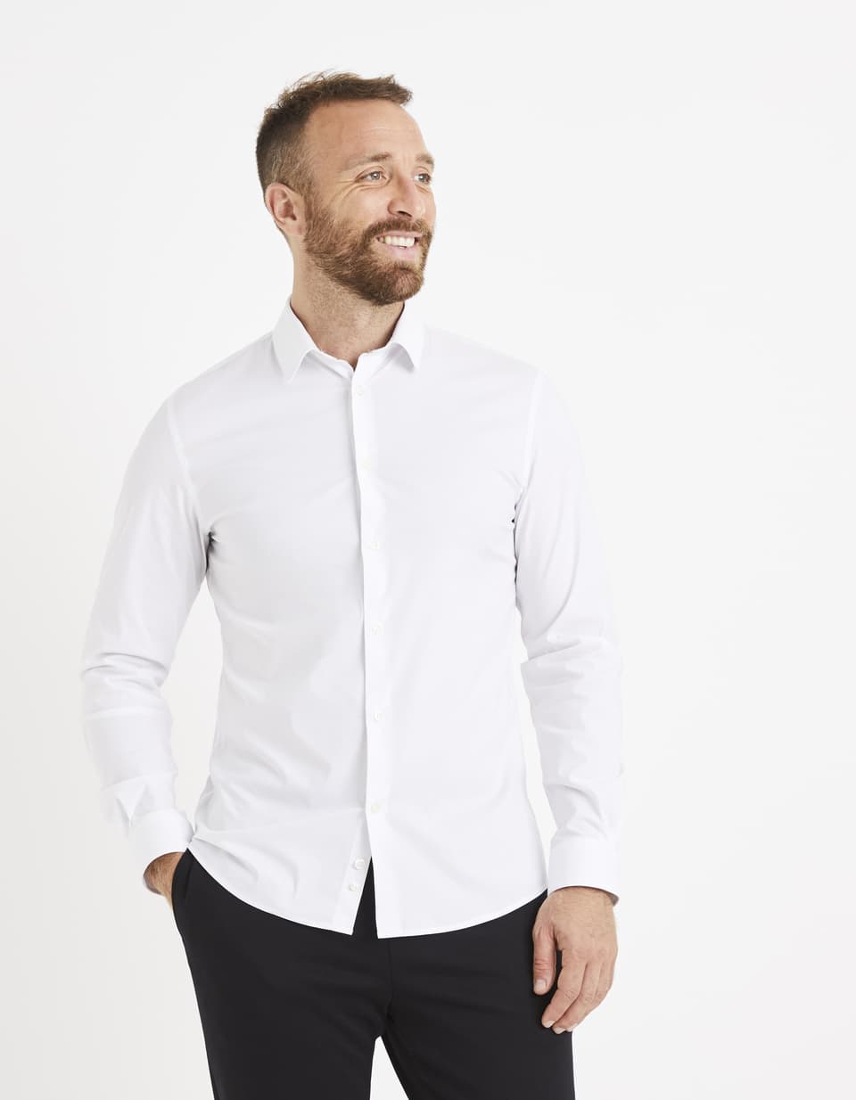Chemise slim col français coton stretch