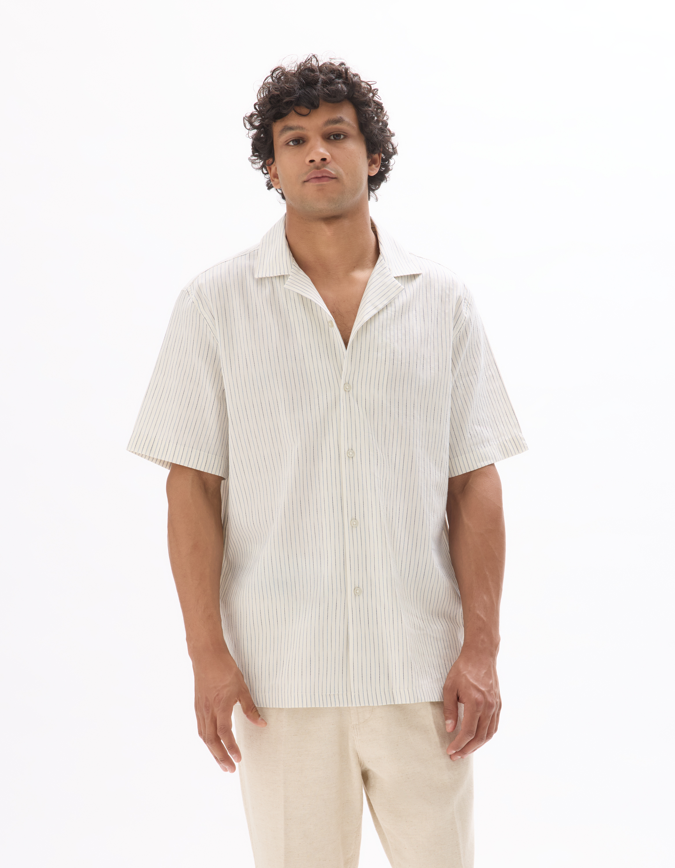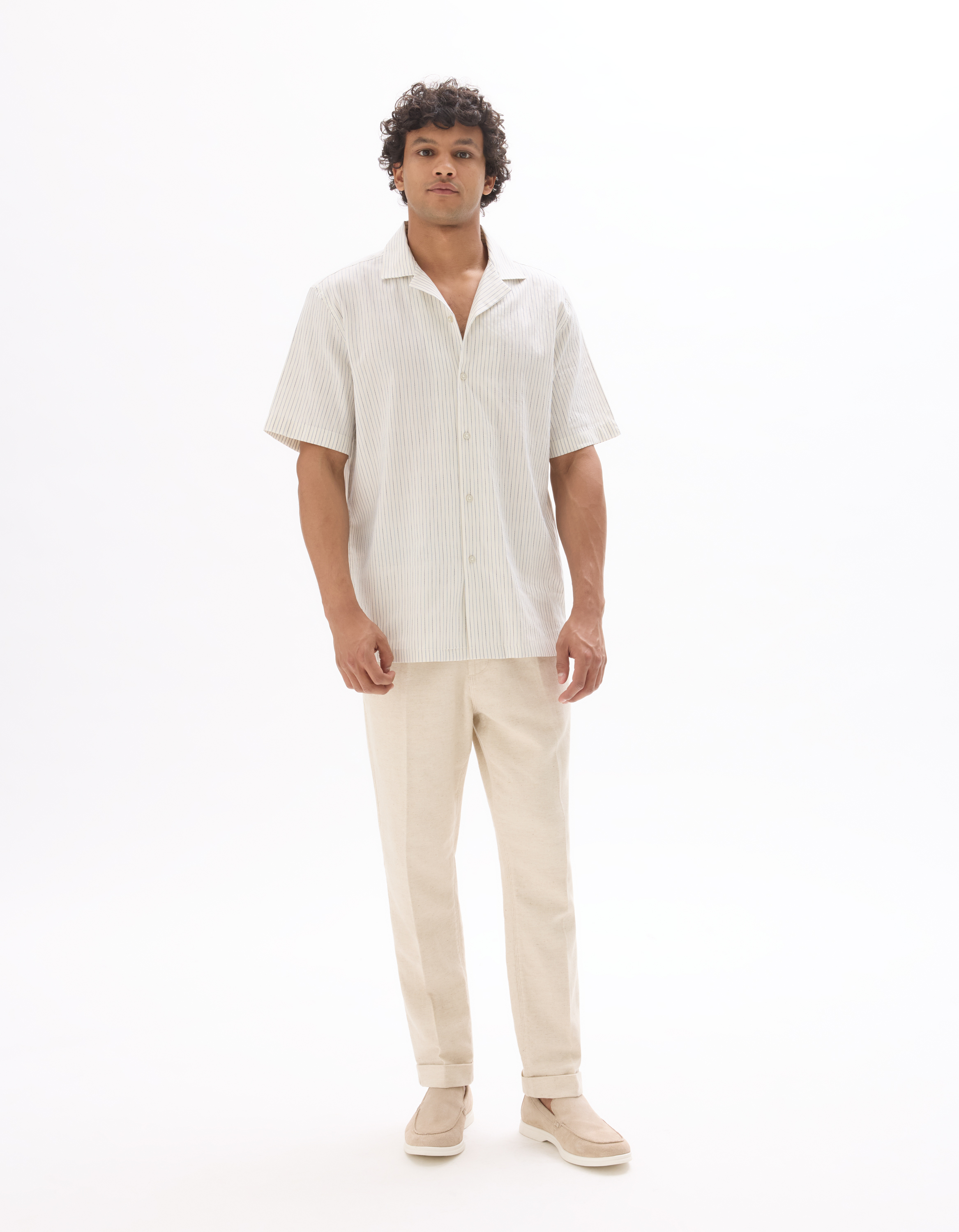Pantalon straight en lin mélangé - naturel