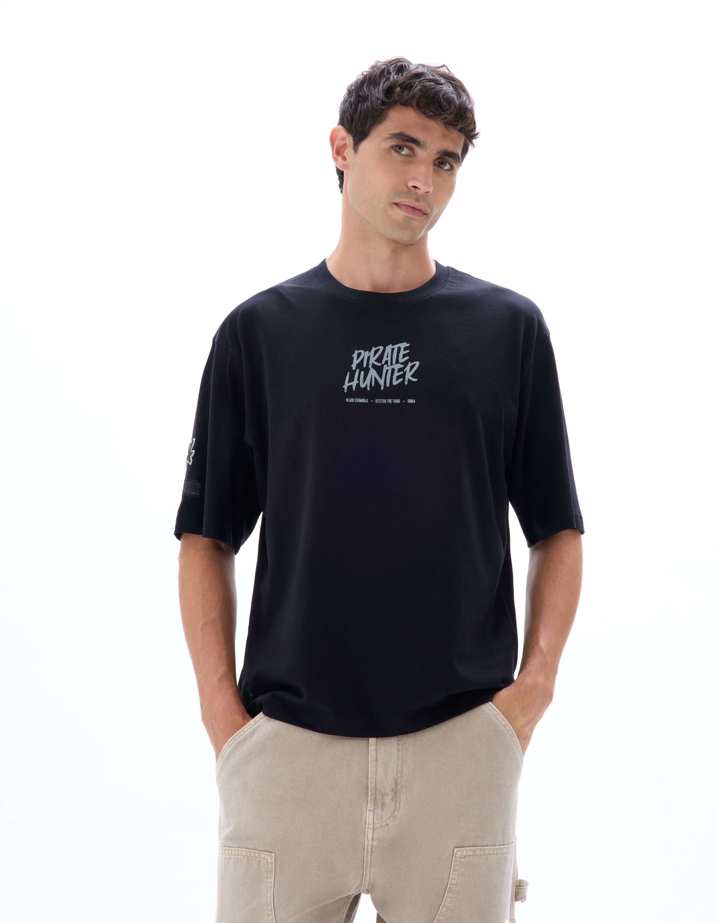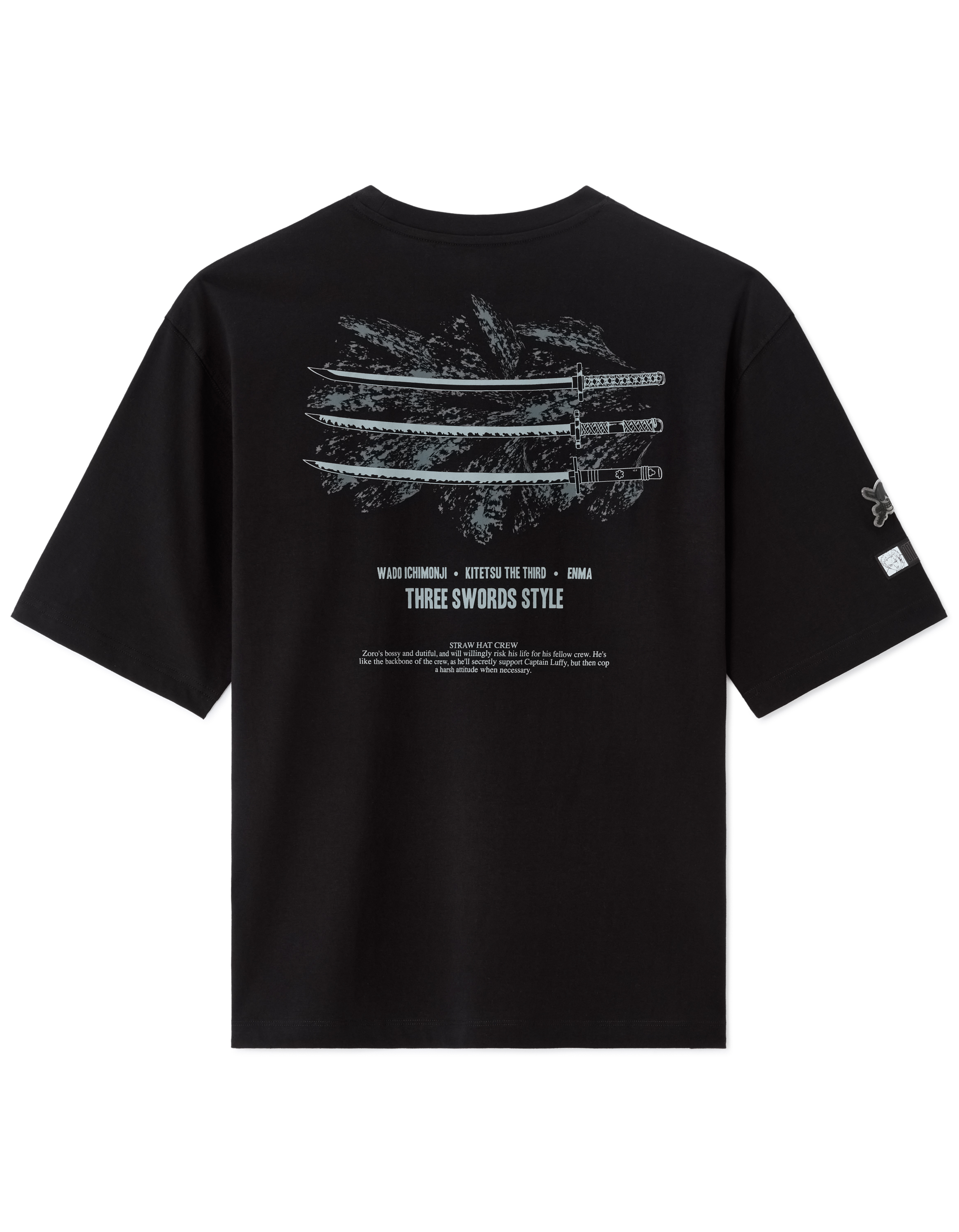 T-shirt noir One Piece autour du personnage de Zoro