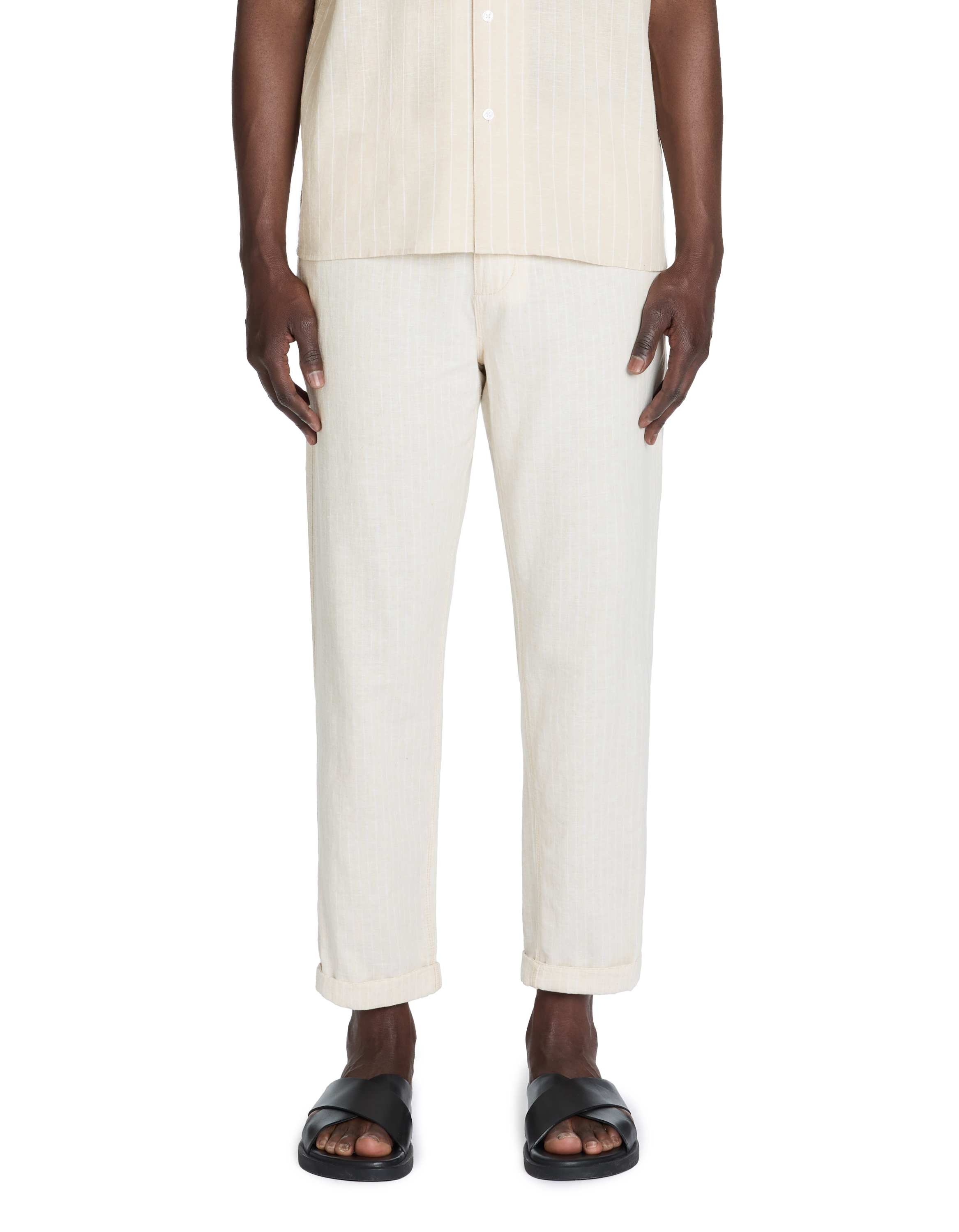 - Pantalon chino beige en coton et lin