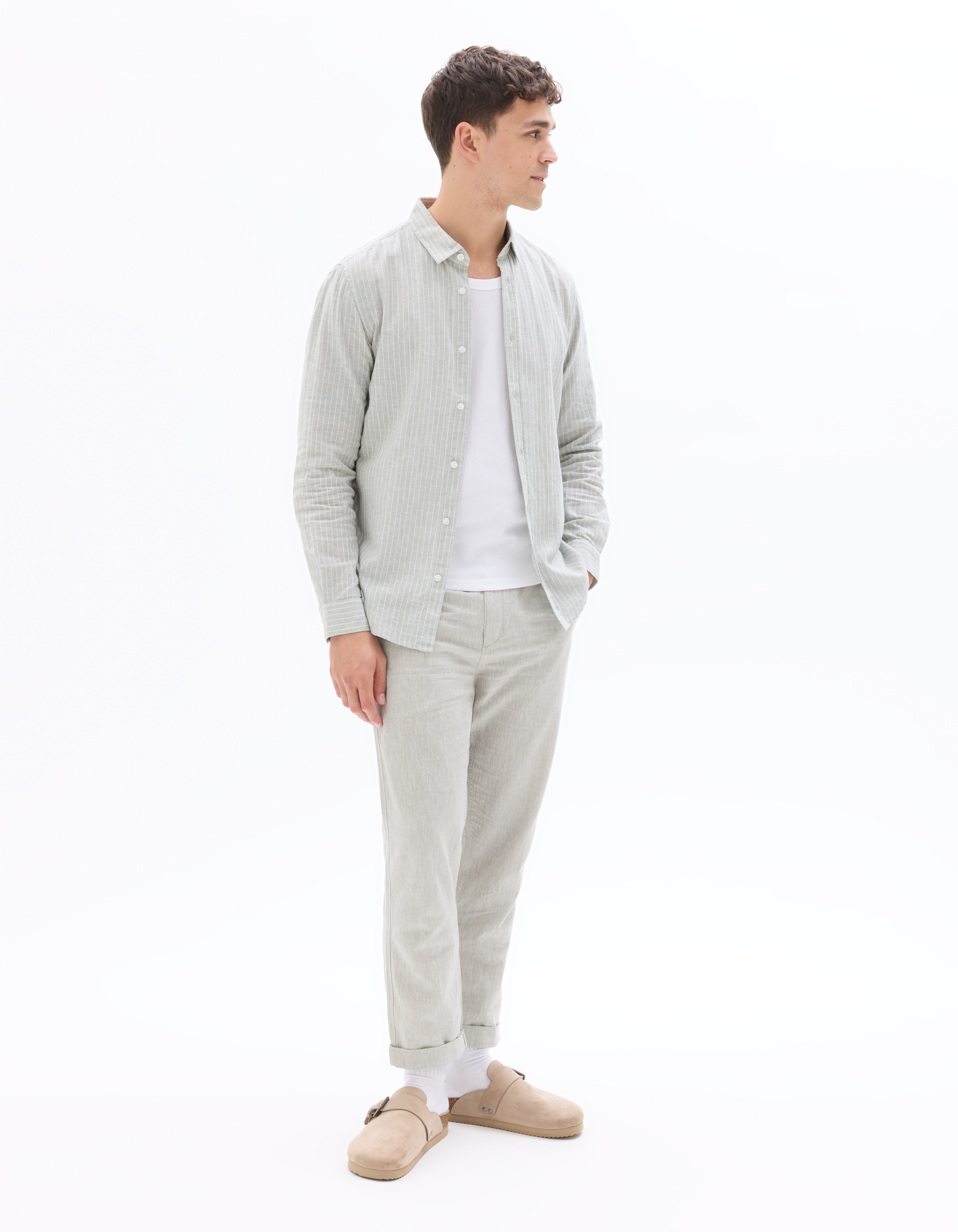 Pantalon straight 100% lin - vert moyen
