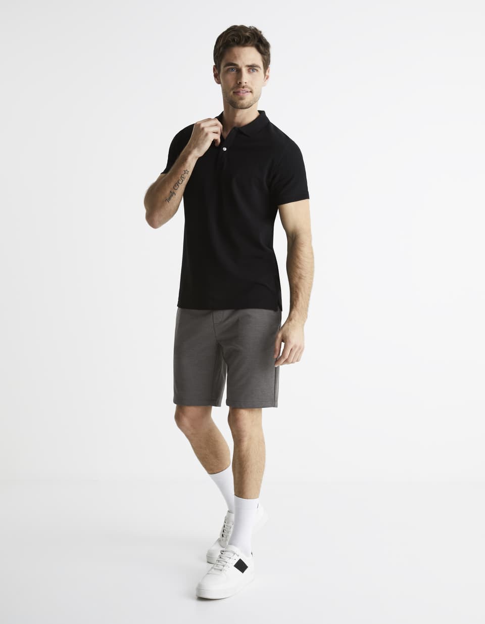 Vous porterez ce polo homme à manches courtes avec un pantalon chino, pour créer un look casual et confortable. Le polo est 100 % coton, avec une broderie étoile en ton sur ton au niveau de la poitrine. Son col est agrémenté de deux boutons.