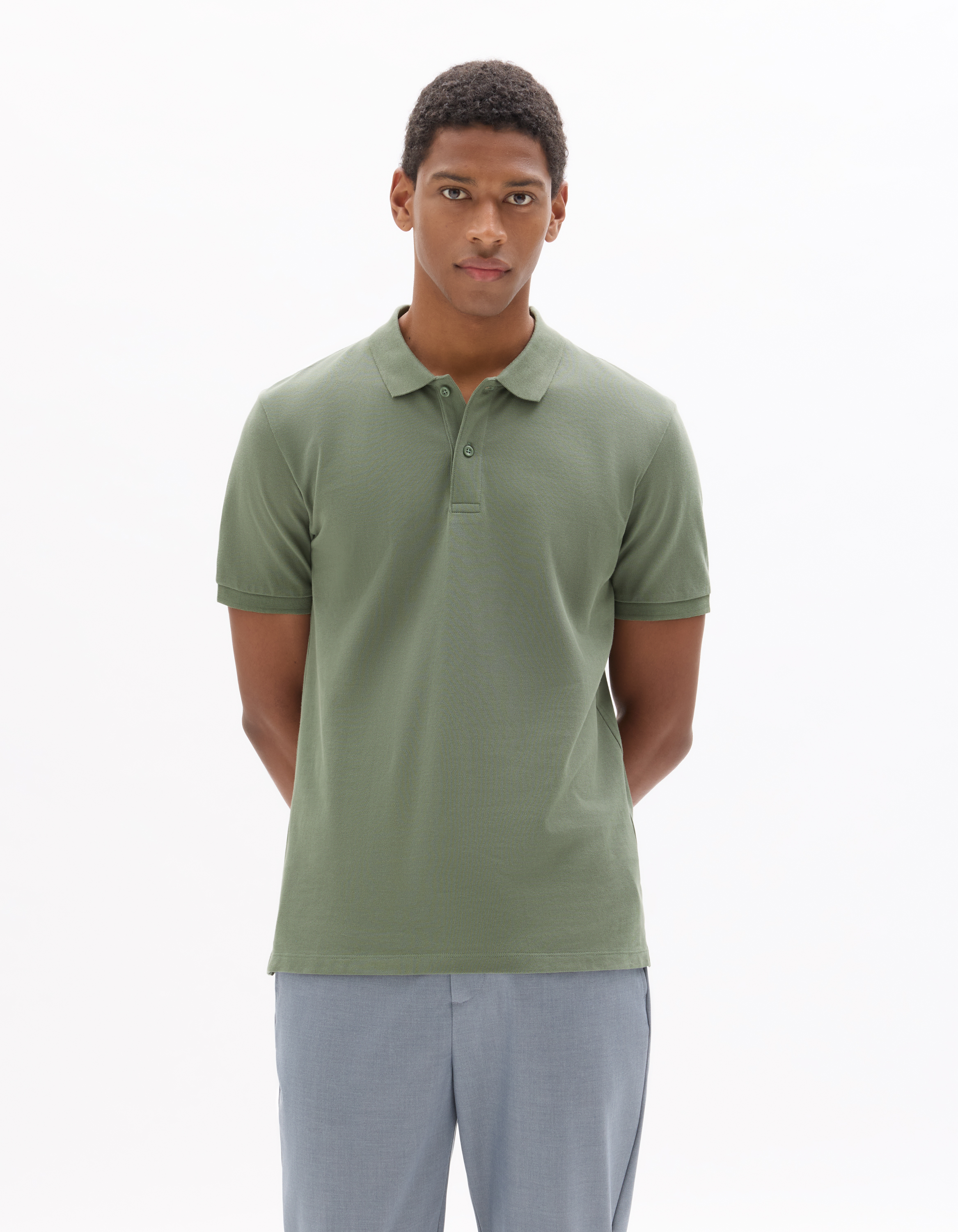 Coupe regular ni slim ni large, matière résistante et respirante avec son coton piqué, accepté au bureau comme à la maison.