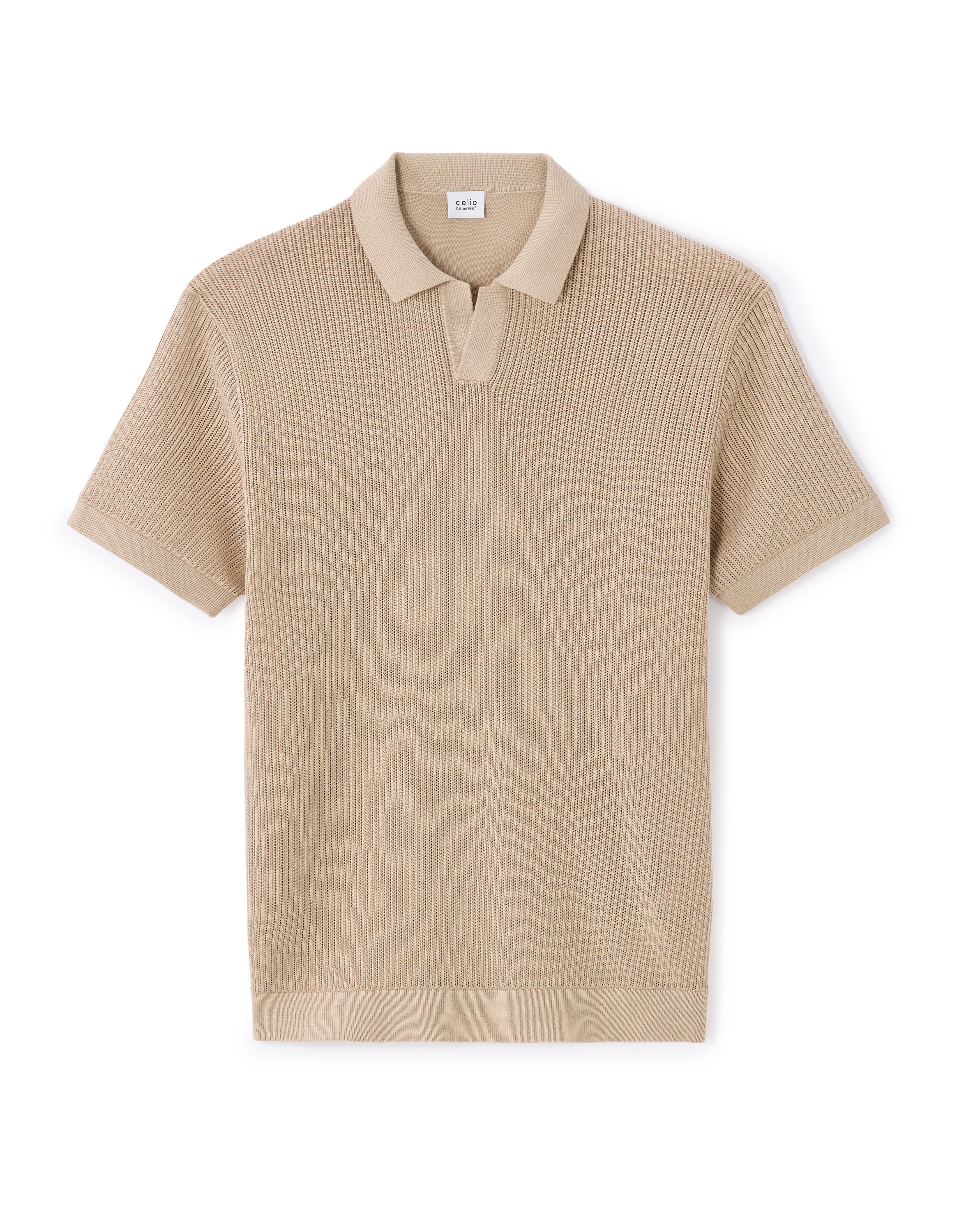 Pull col polo slim 100% coton - beige foncé