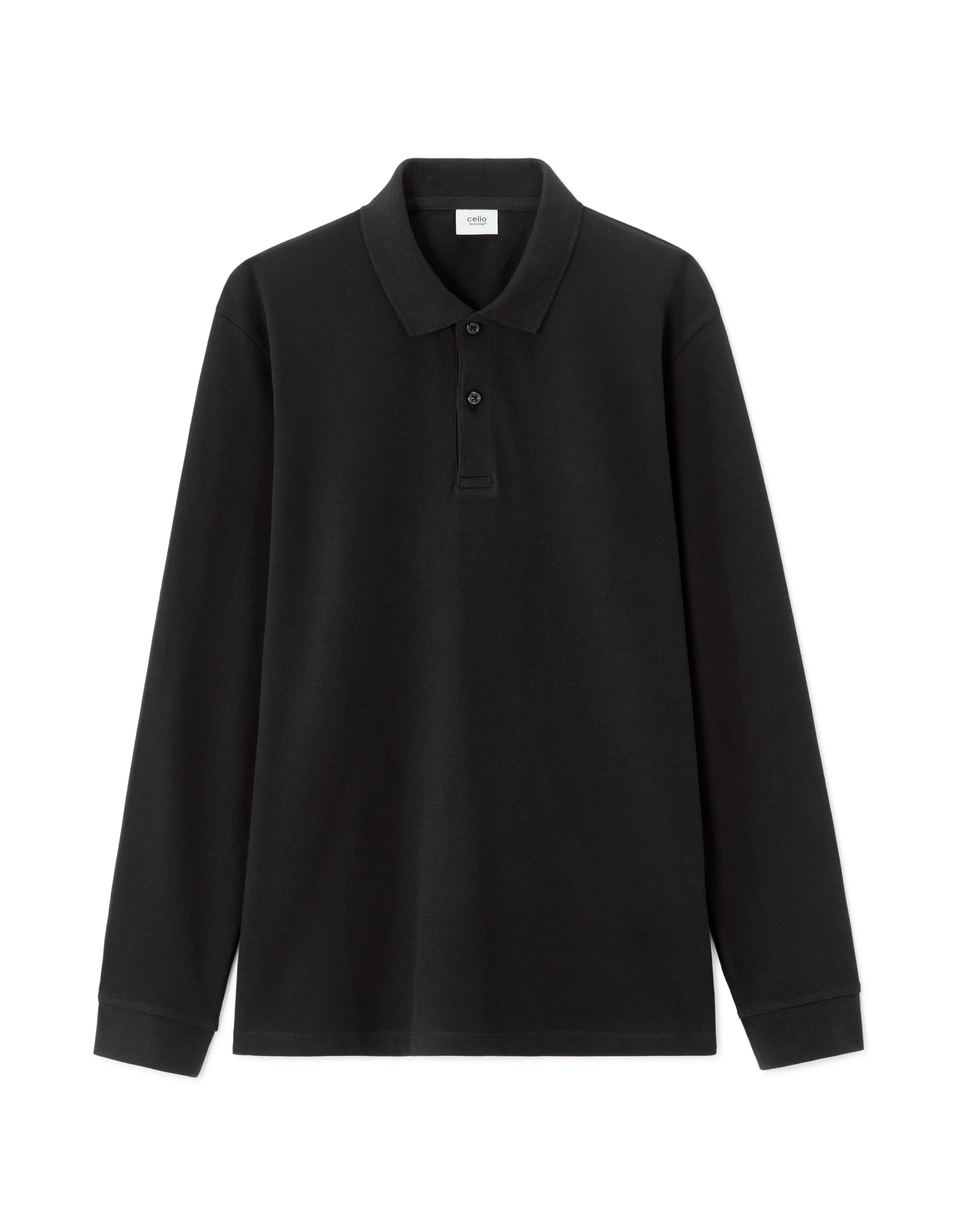 Polo regular piqué 100% coton manches longues - noir