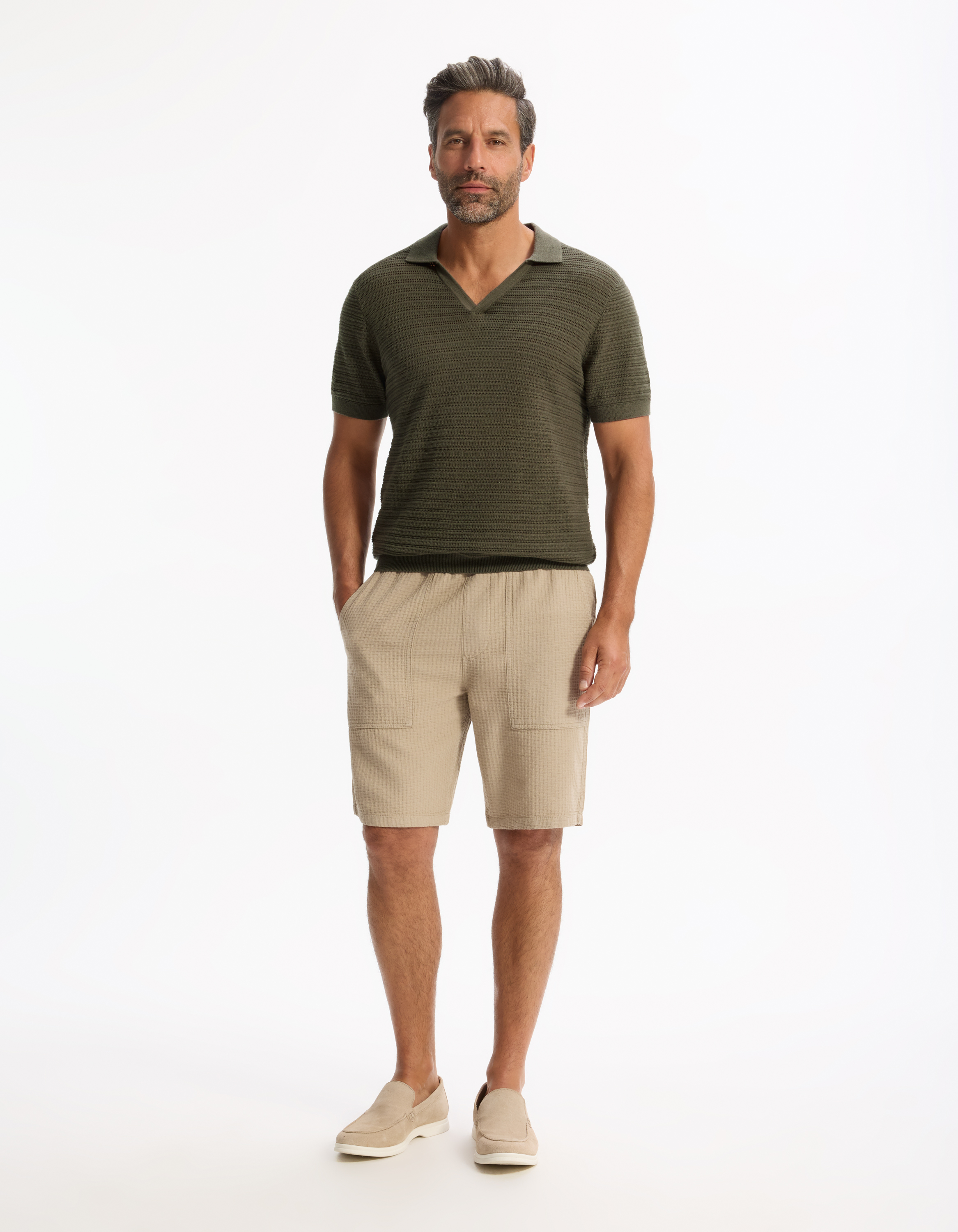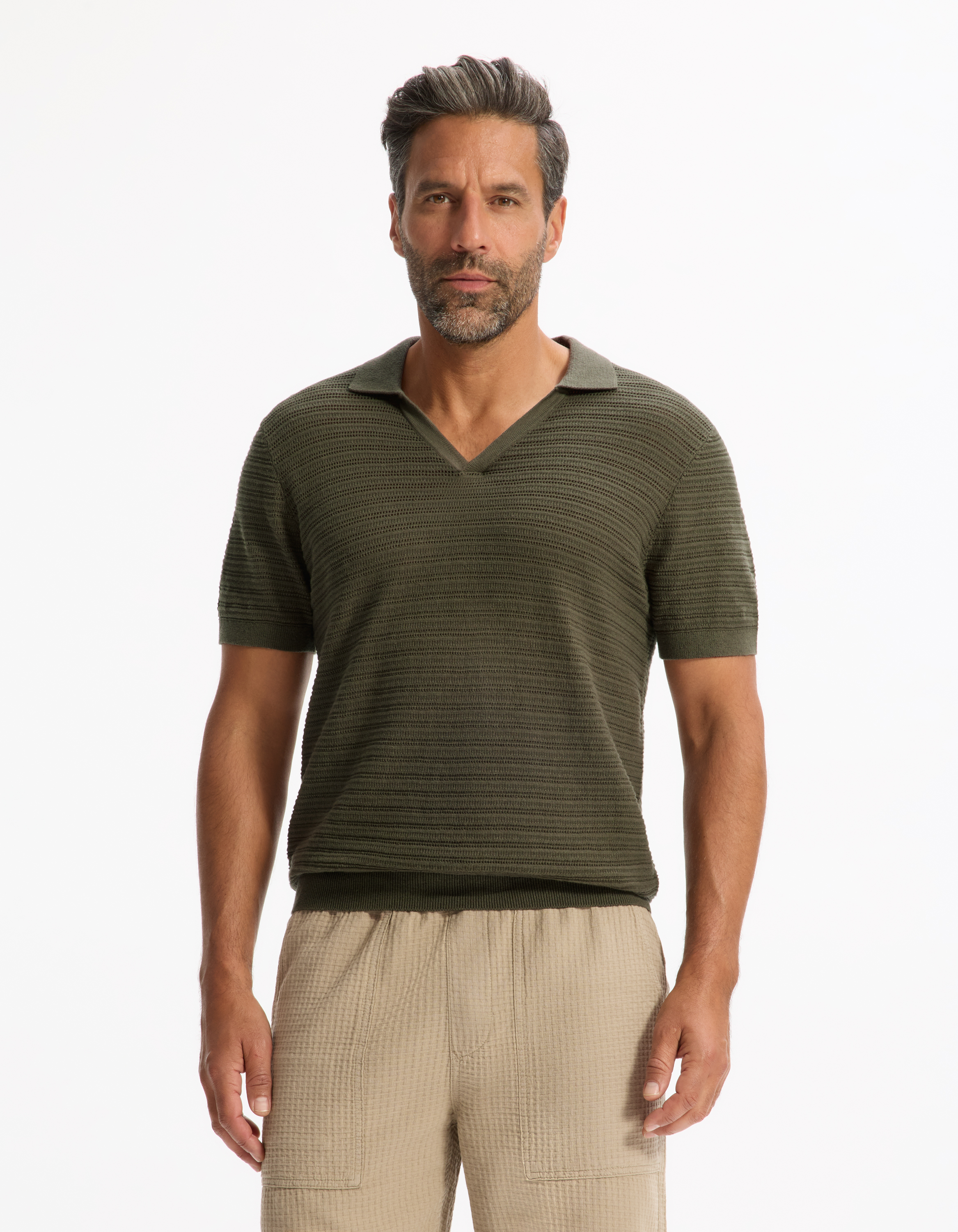 Polo slim en maille texturée coton mélangé - kaki