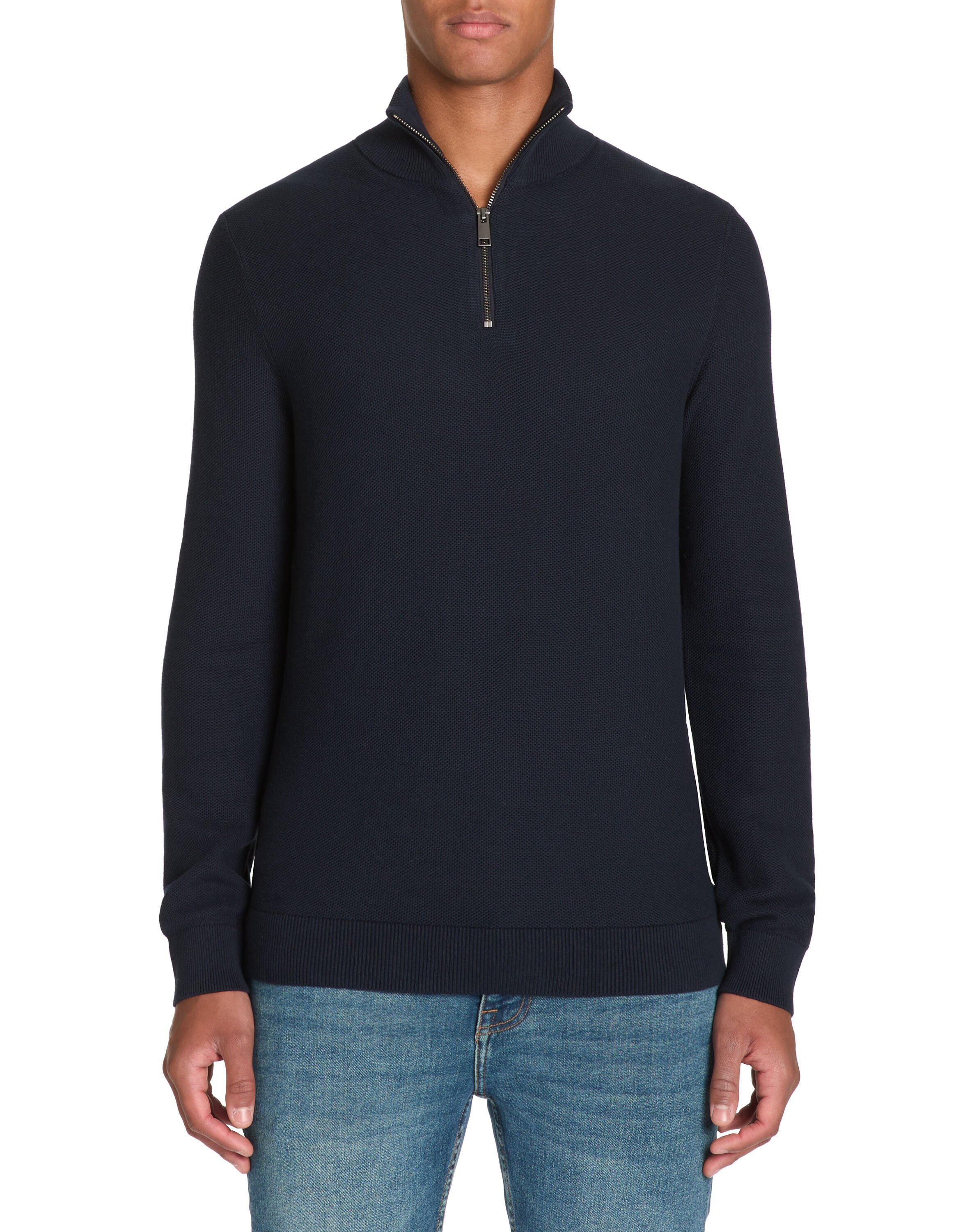 Pull col camionneur 100% coton - bleu moyen