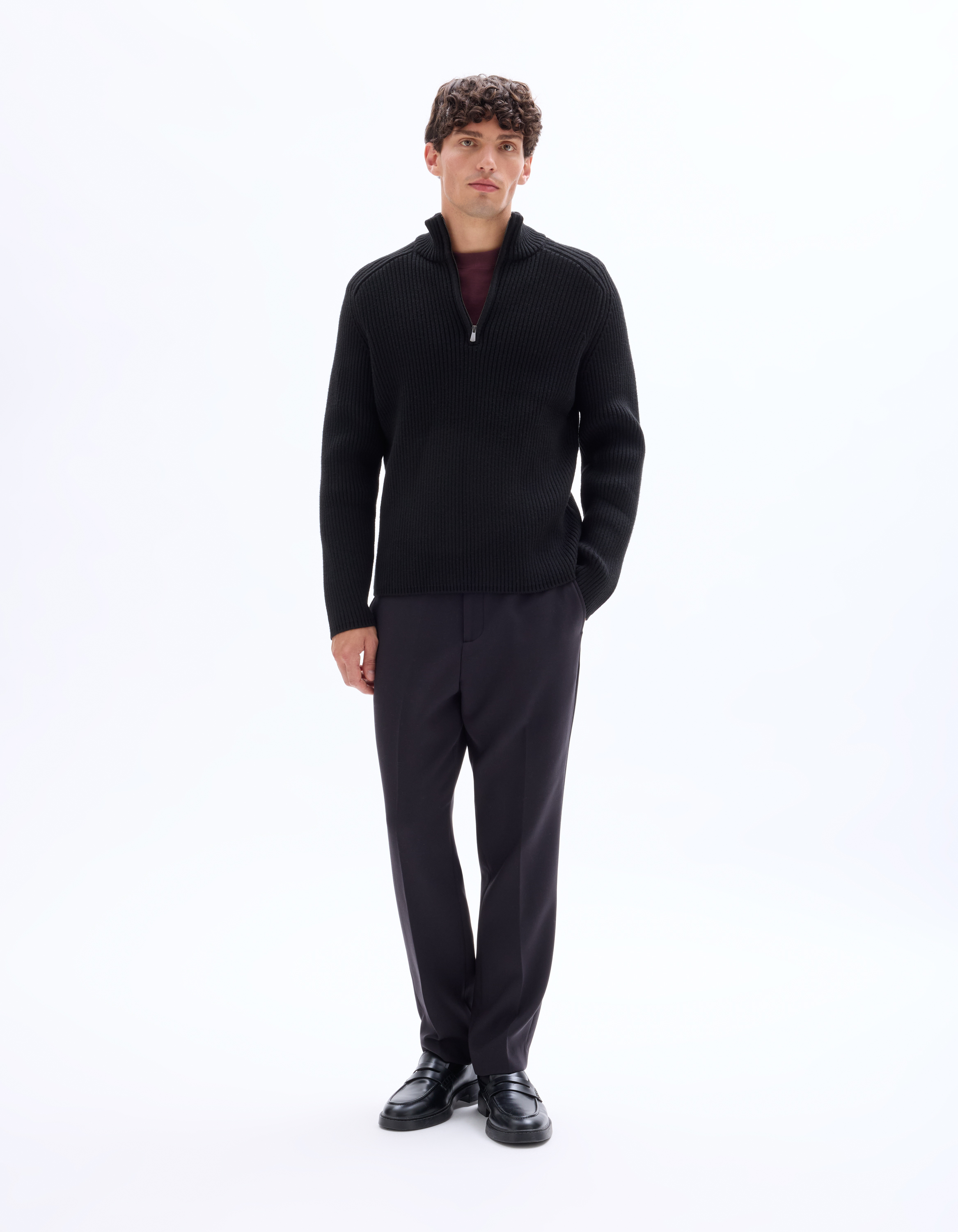Pull col camionneur zippé coton - noir Pull col camionneur zippé coton - noir -30%