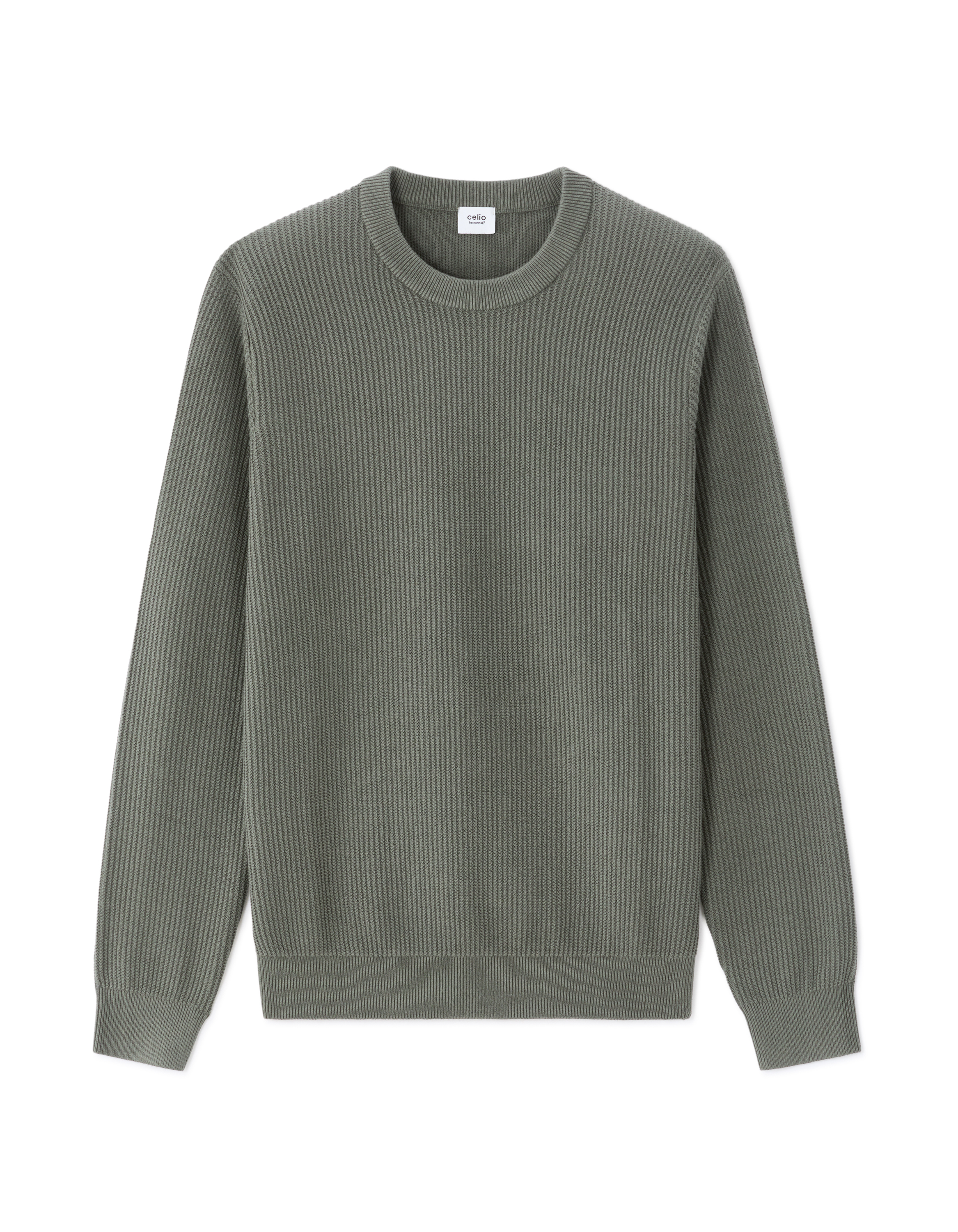 Pull col rond 100% coton en chevron - vert foncé