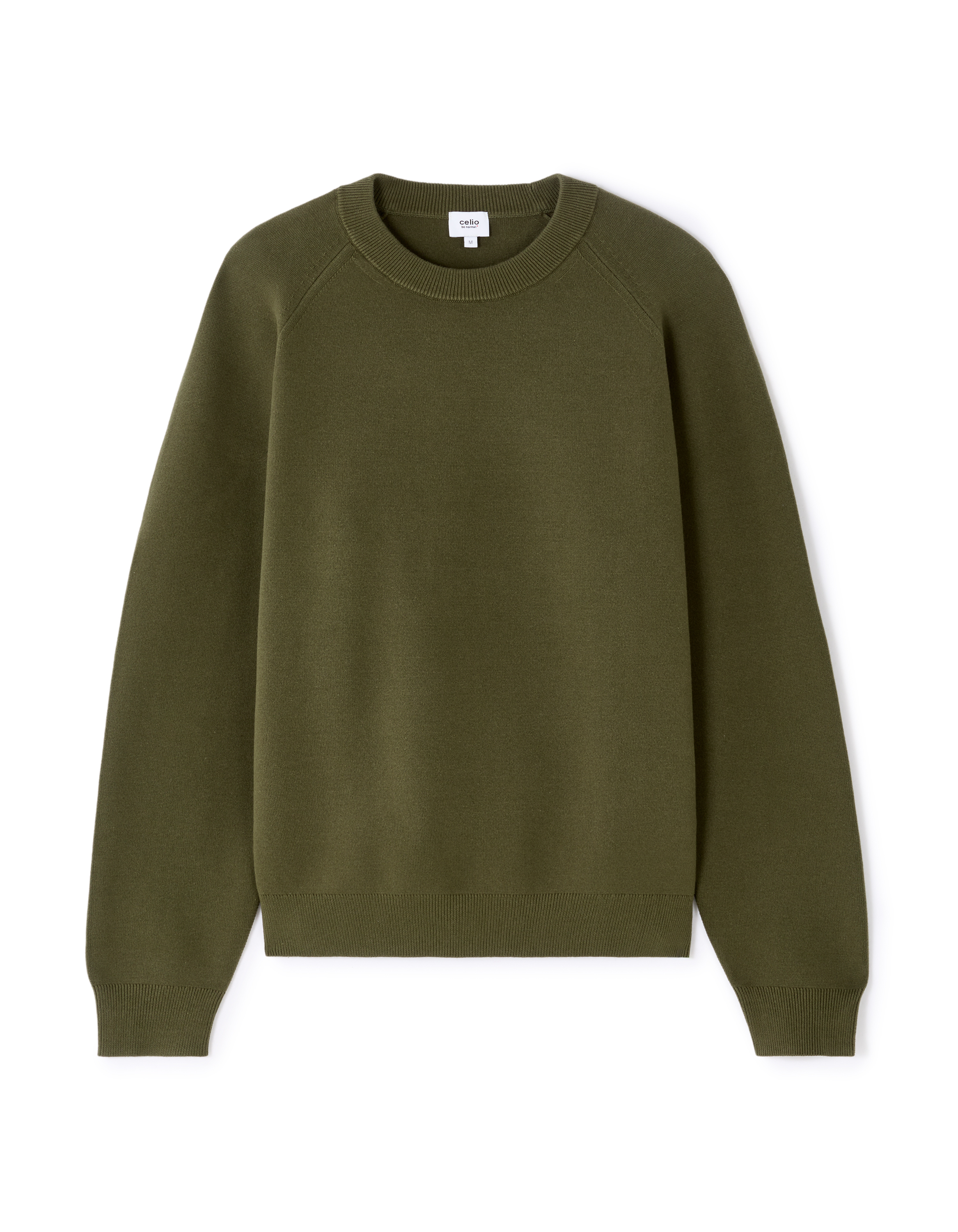 Pull col rond en coton mélangé uni - Kaki