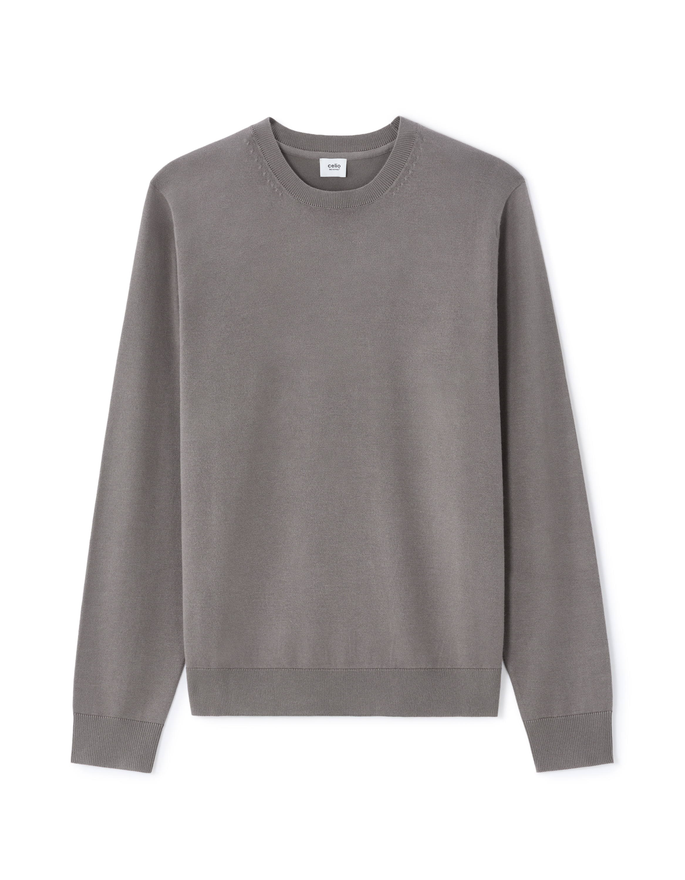 Pull col rond uni en maille fine - gris
