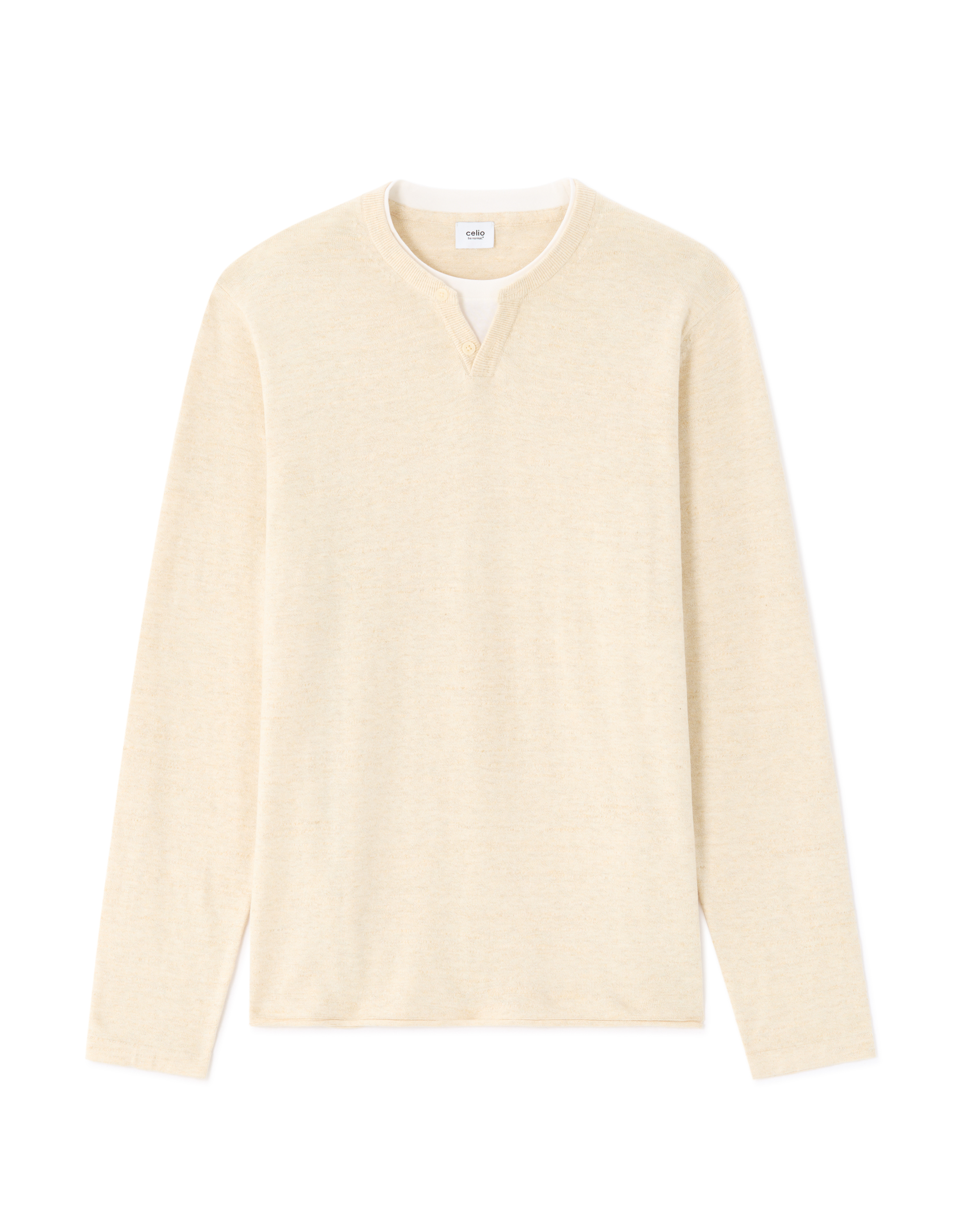 Pull col tunisien coton mélangé - beige clair