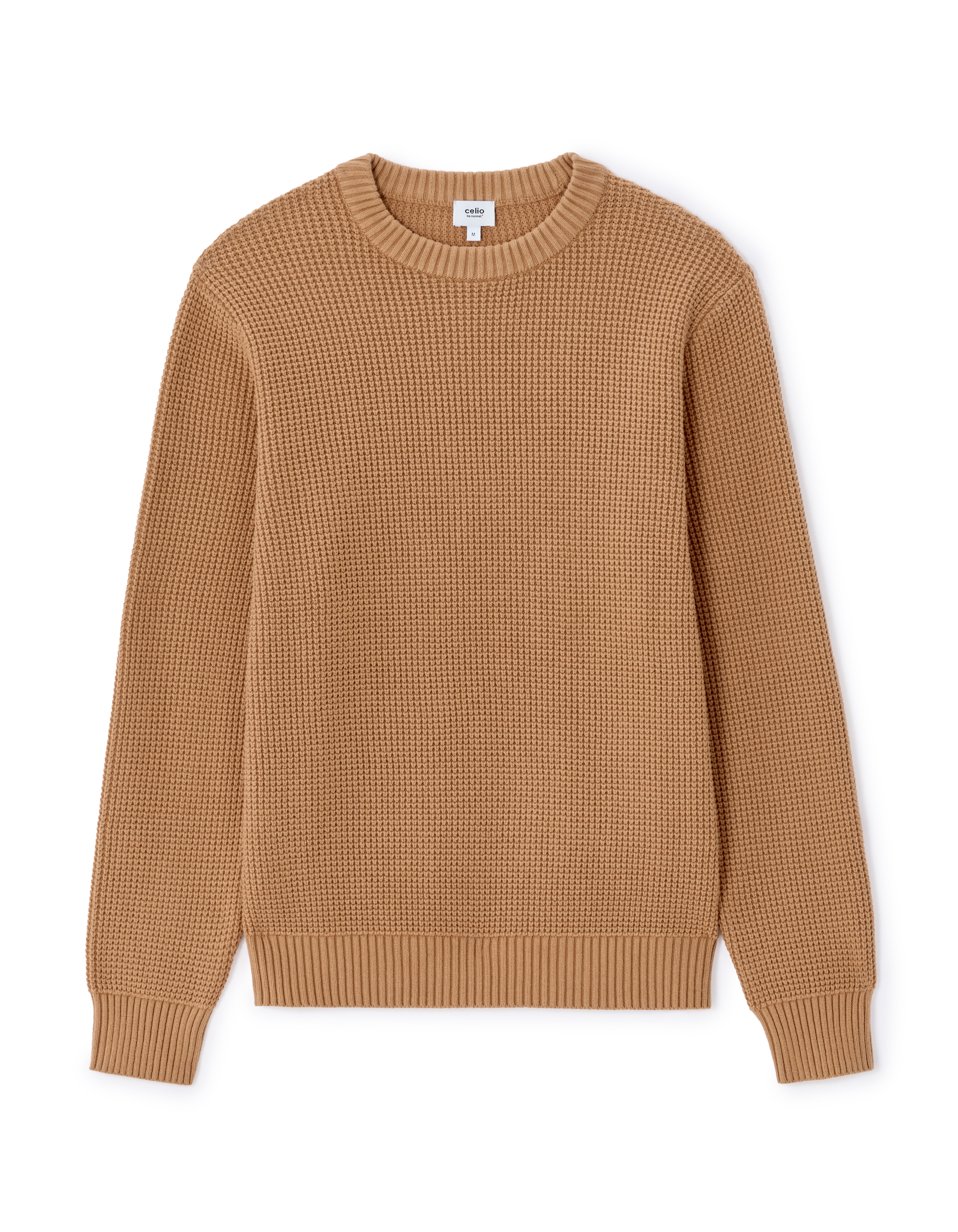 Pull gaufré col rond regular en coton mélangé - camel