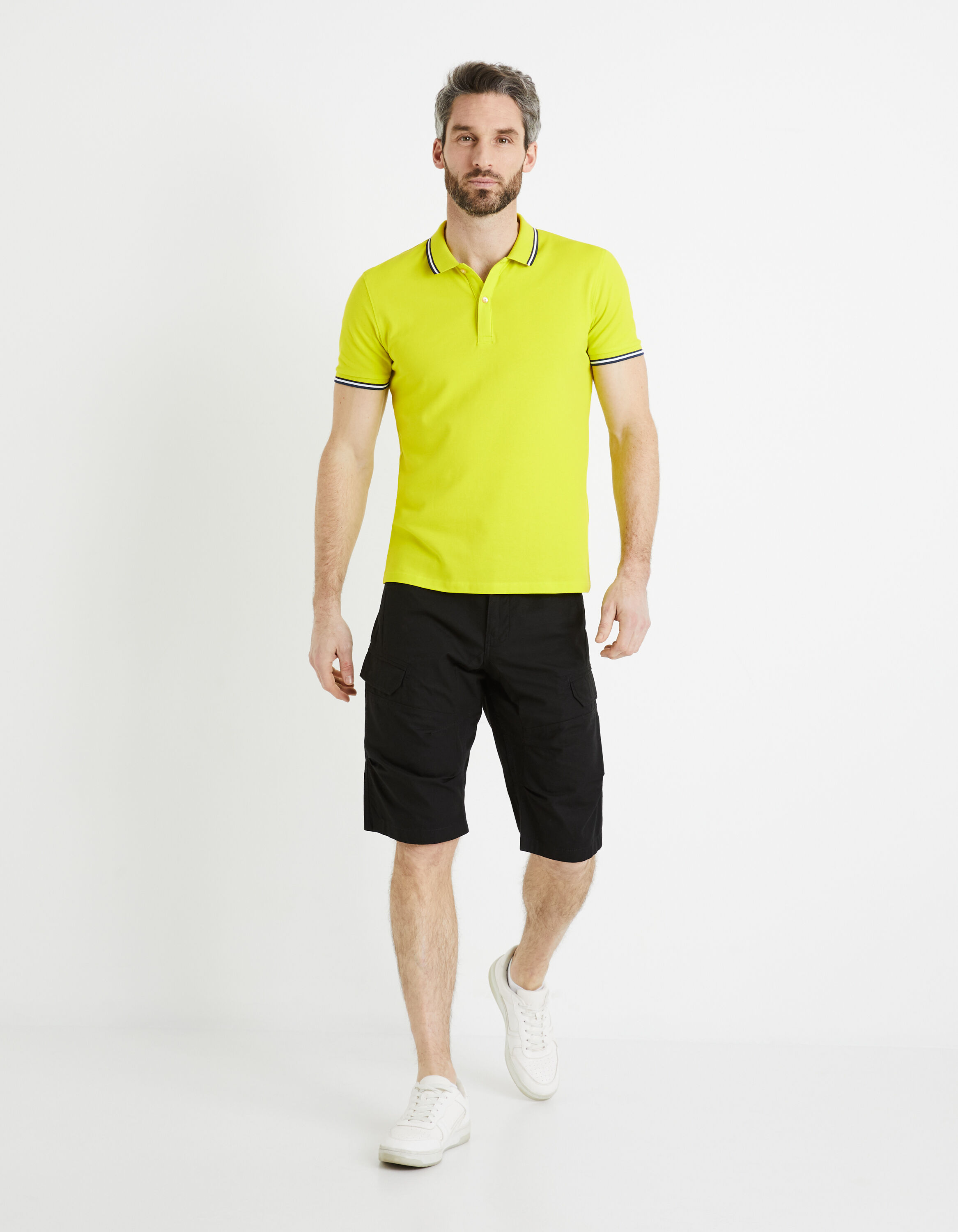 Pratique et agréable à porter, le bermuda cargo pour homme se porte tout simplement avec un t-shirt. Il est équipé de poches à rabat sur les cuisses et a une coupe droite qui ira bien à toutes les silhouettes. Sa composition est 100 % coton.