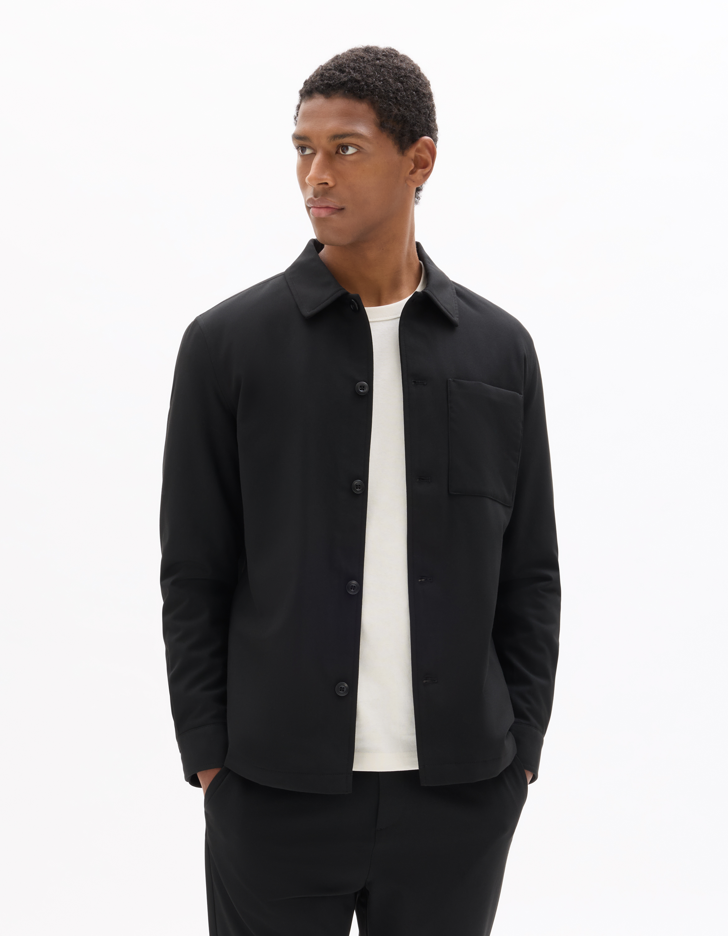 Pour l'homme moderne en quête d'un style décontracté et soigné, cette surchemise noire est la pièce maîtresse idéale pour compléter un look casual chic.