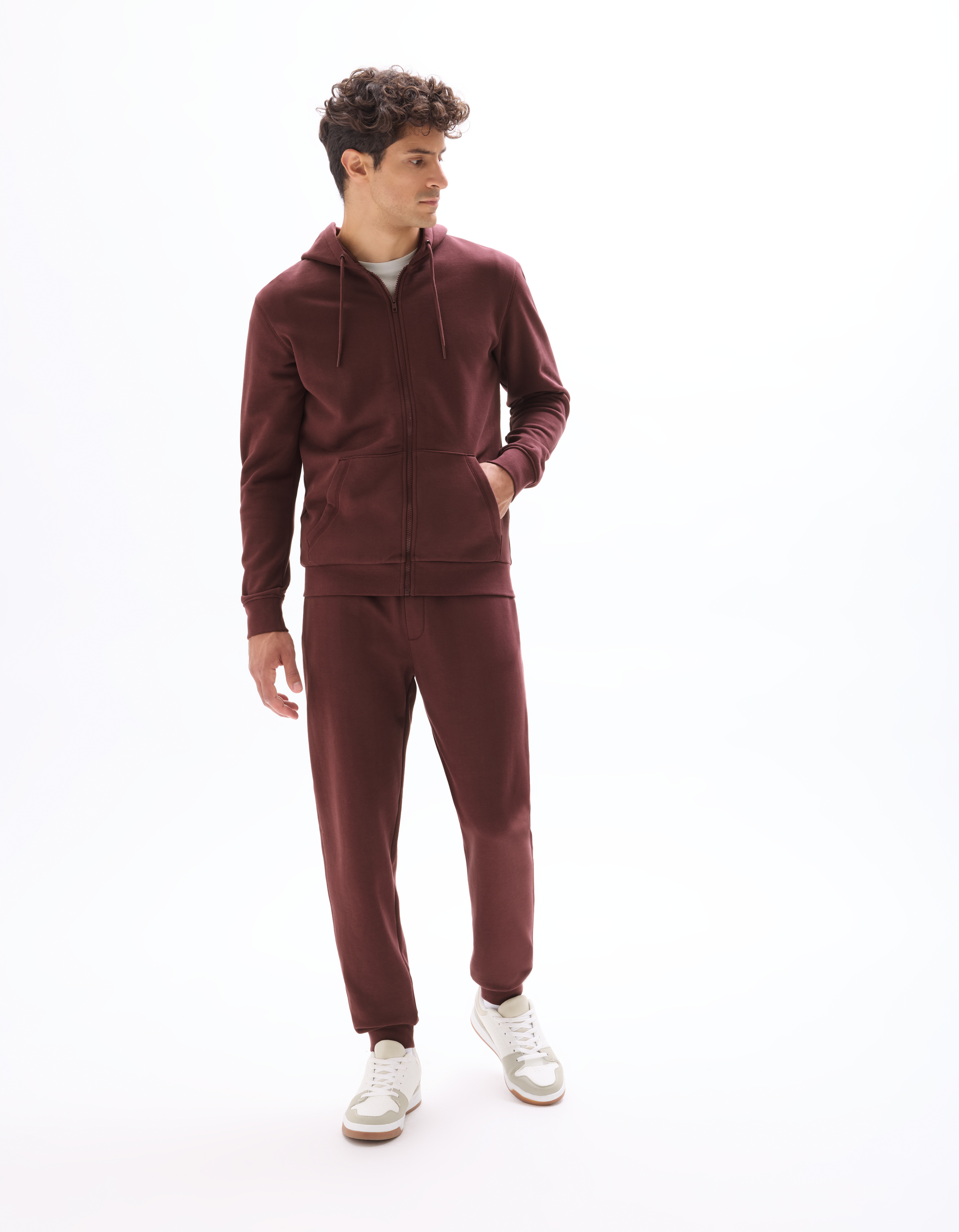 Sweat zippé à capuche 100% coton - bordeaux
