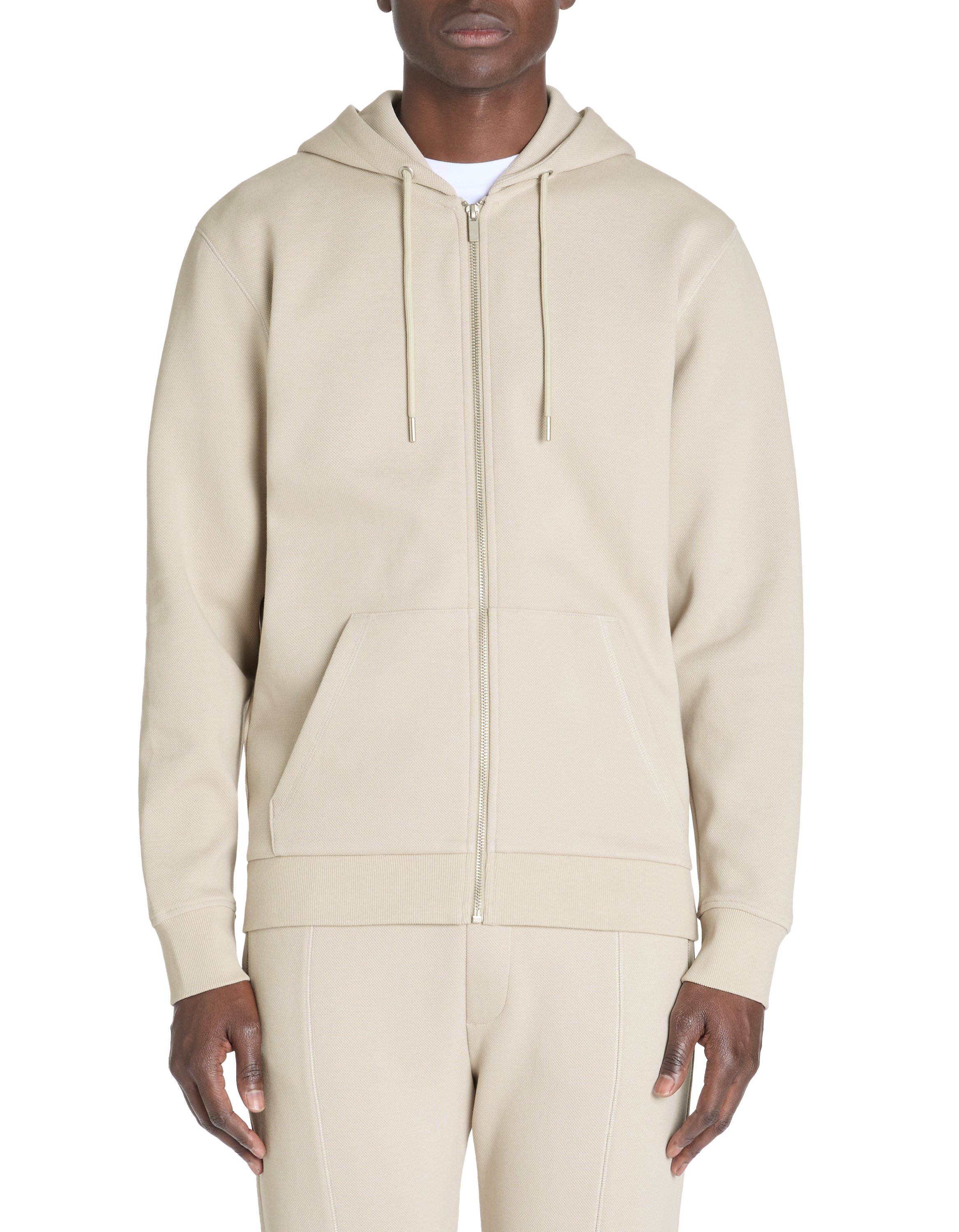 Sweat zippé à capuche regular en piqué - taupe Sweat zippé à capuche regular en piqué - taupe Nouveauté-50%