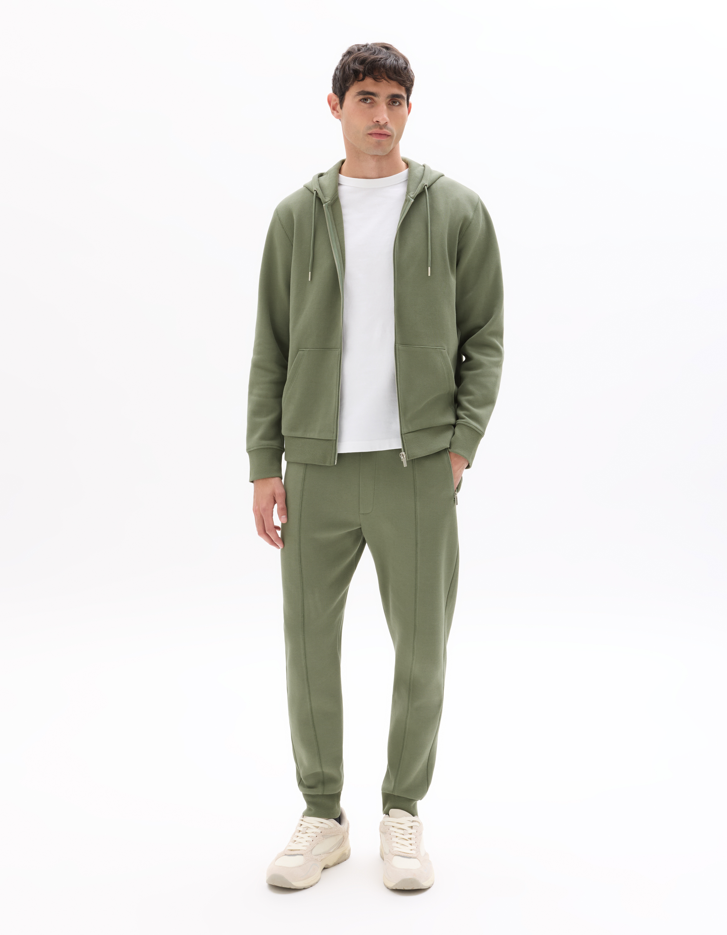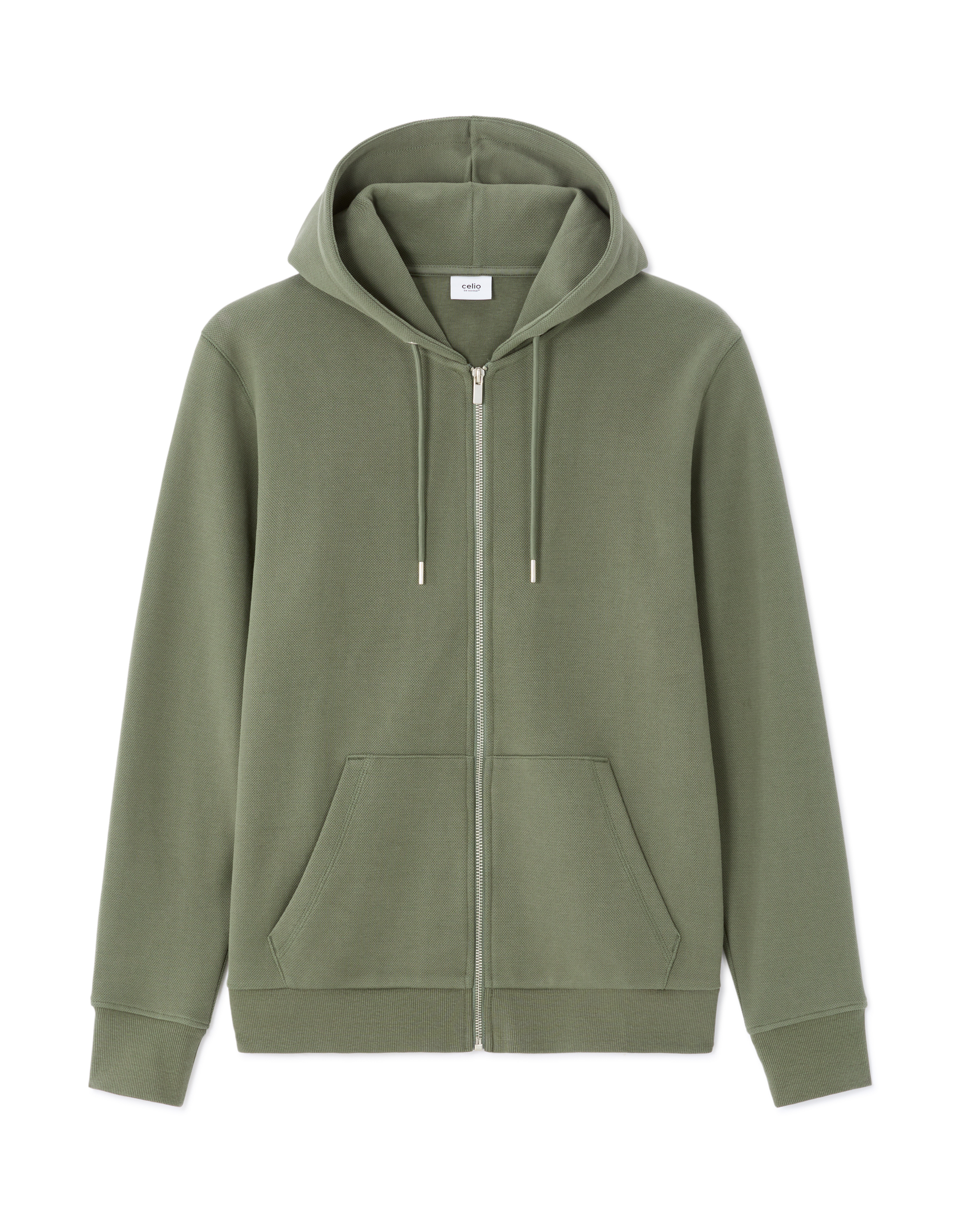 Sweat zippé à capuche regular en piqué - vert