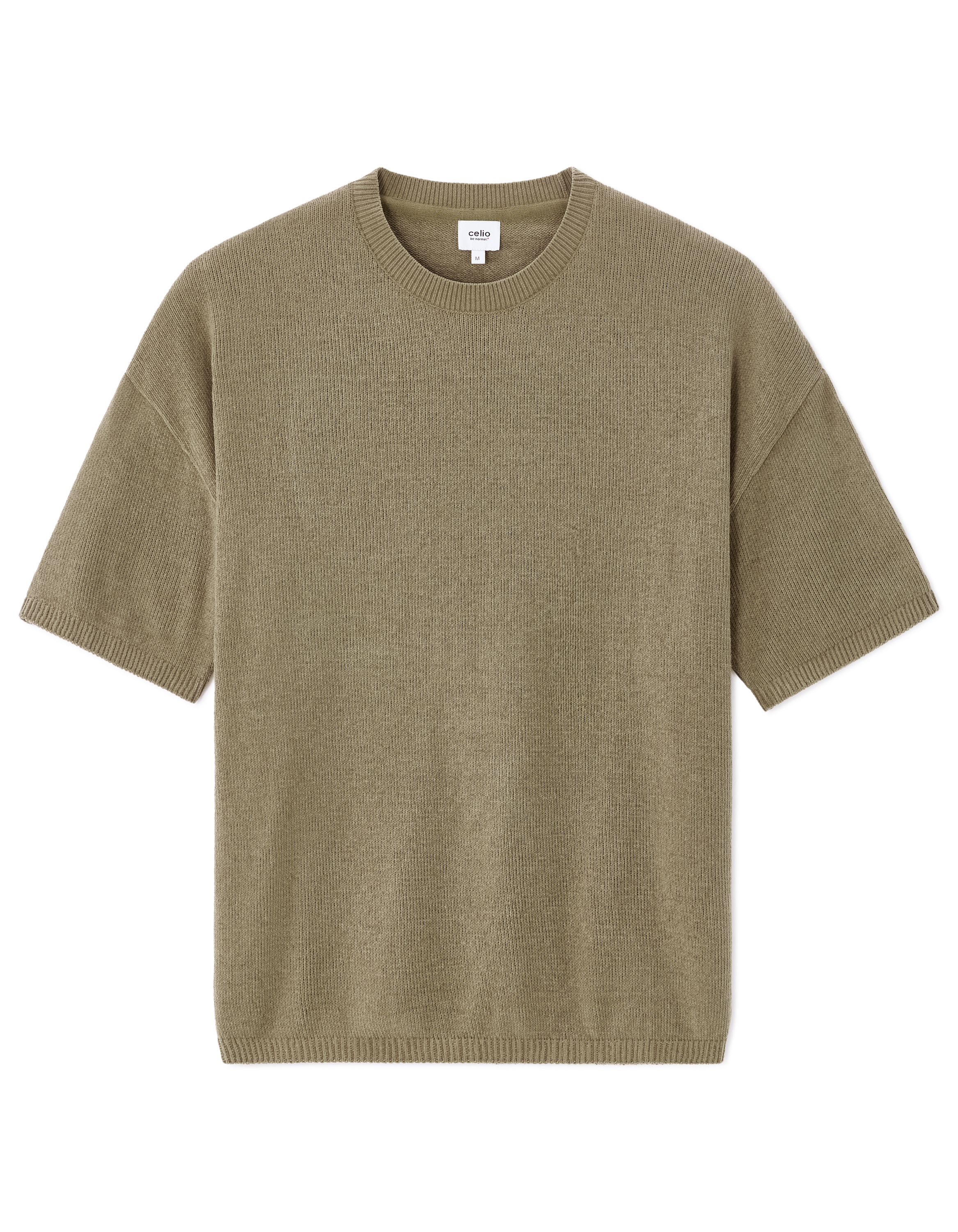 T-shirt boxy col rond en maille - taupe