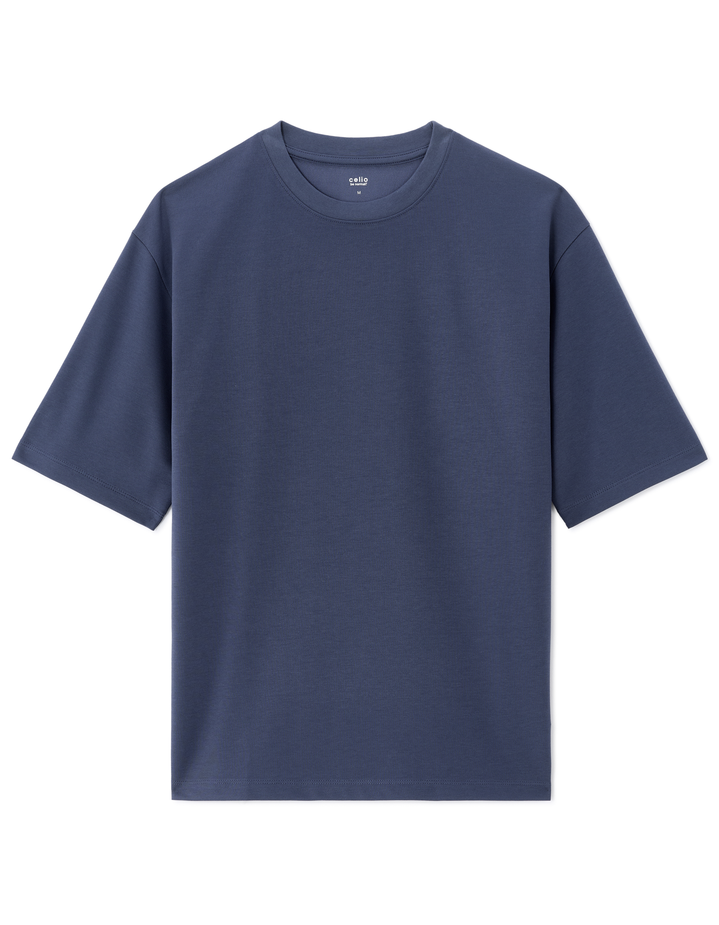 T-shirt boxy col rond 100% coton - marine