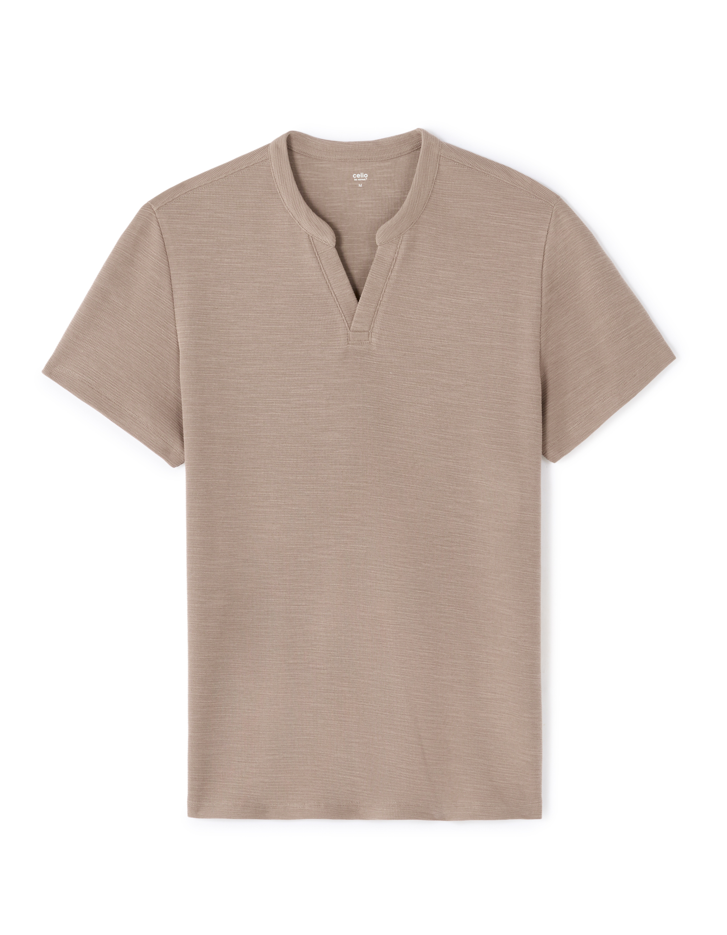 T-Shirt regular col Henley 100% coton - taupe