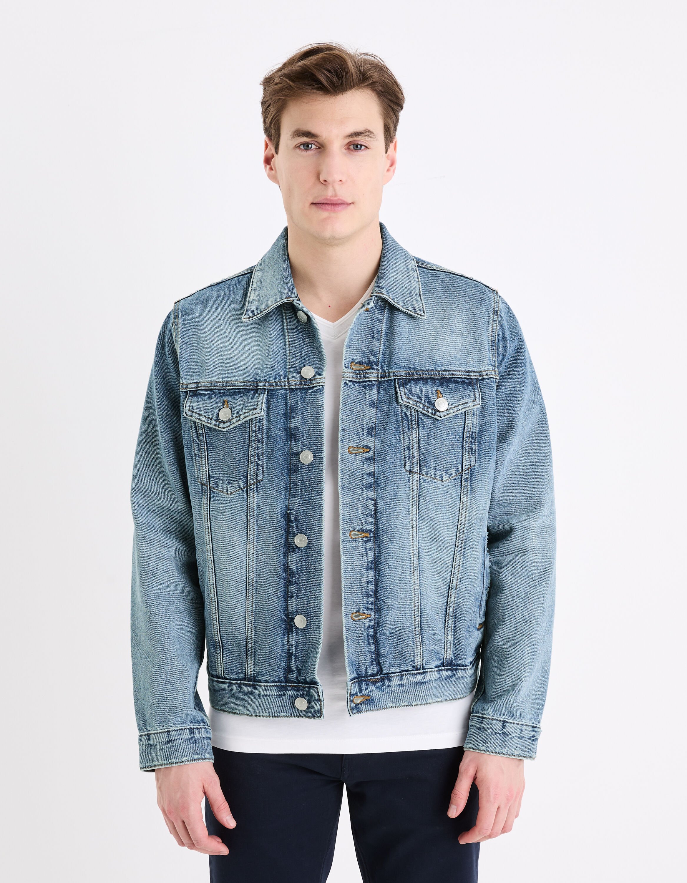 Cette veste trucker en denim est un incontournable du vestiaire de l'homme moderne.